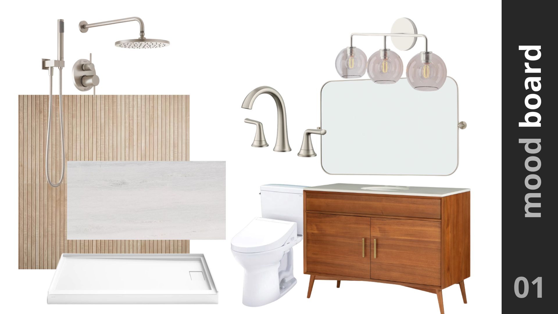 Using larger tile means fewer grout lines, which makes the space feel cleaner and easier to maintain. To add warmth and character, we installed a vertical accent wall tile inside the shower. The texture adds depth without making the space feel busy.